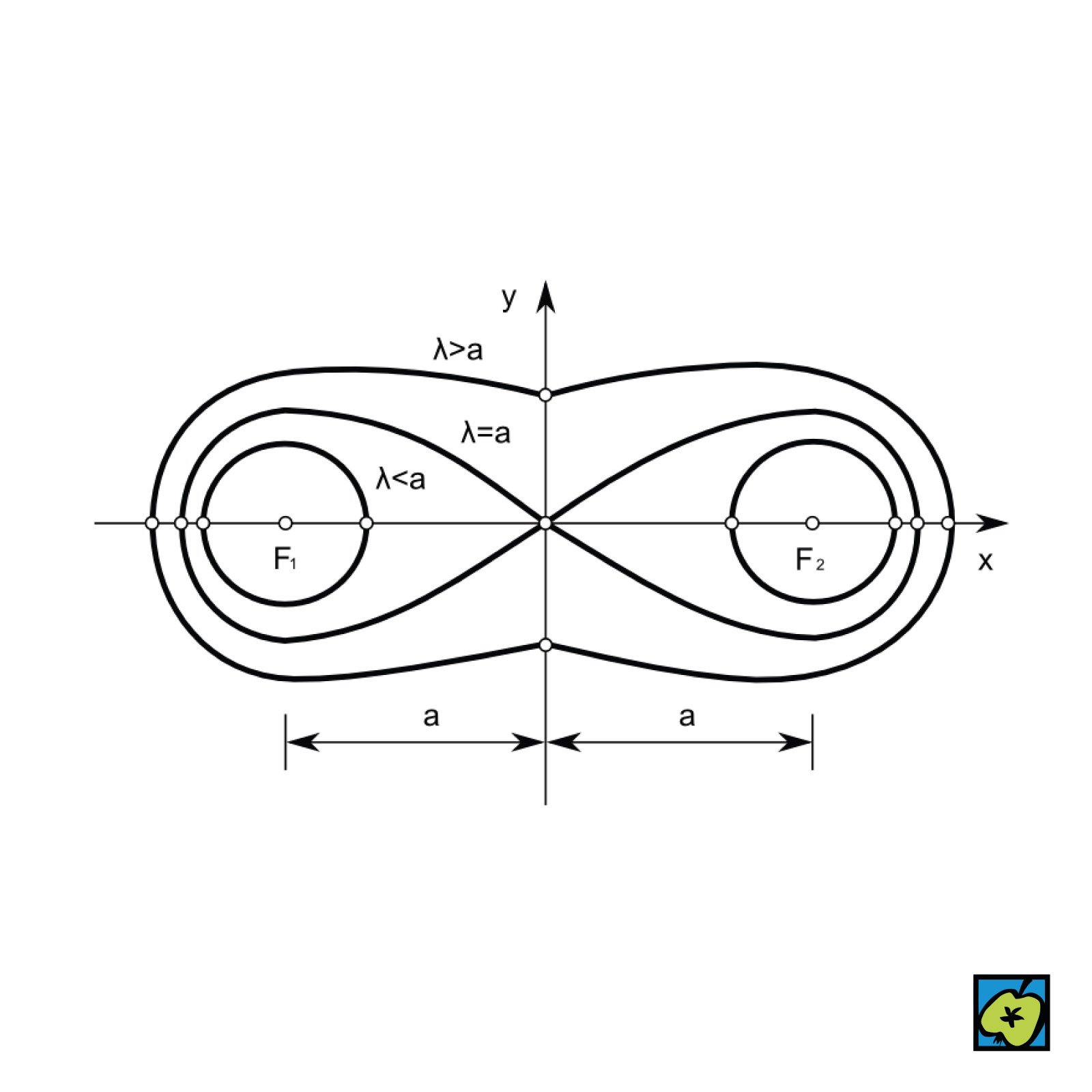 Množina bodů P, které od dvou pevných bodů F1 a F2 mají konstantní součin vzdálenosti λ2. Rovnice Cassiniho křivky v kartézském (pravoúhlém) souřadnicovém systému je: y4+2y2(x2+a2)+(x2-a2)2=λ4, kde vzdálenost F1 od F2 je 2a.