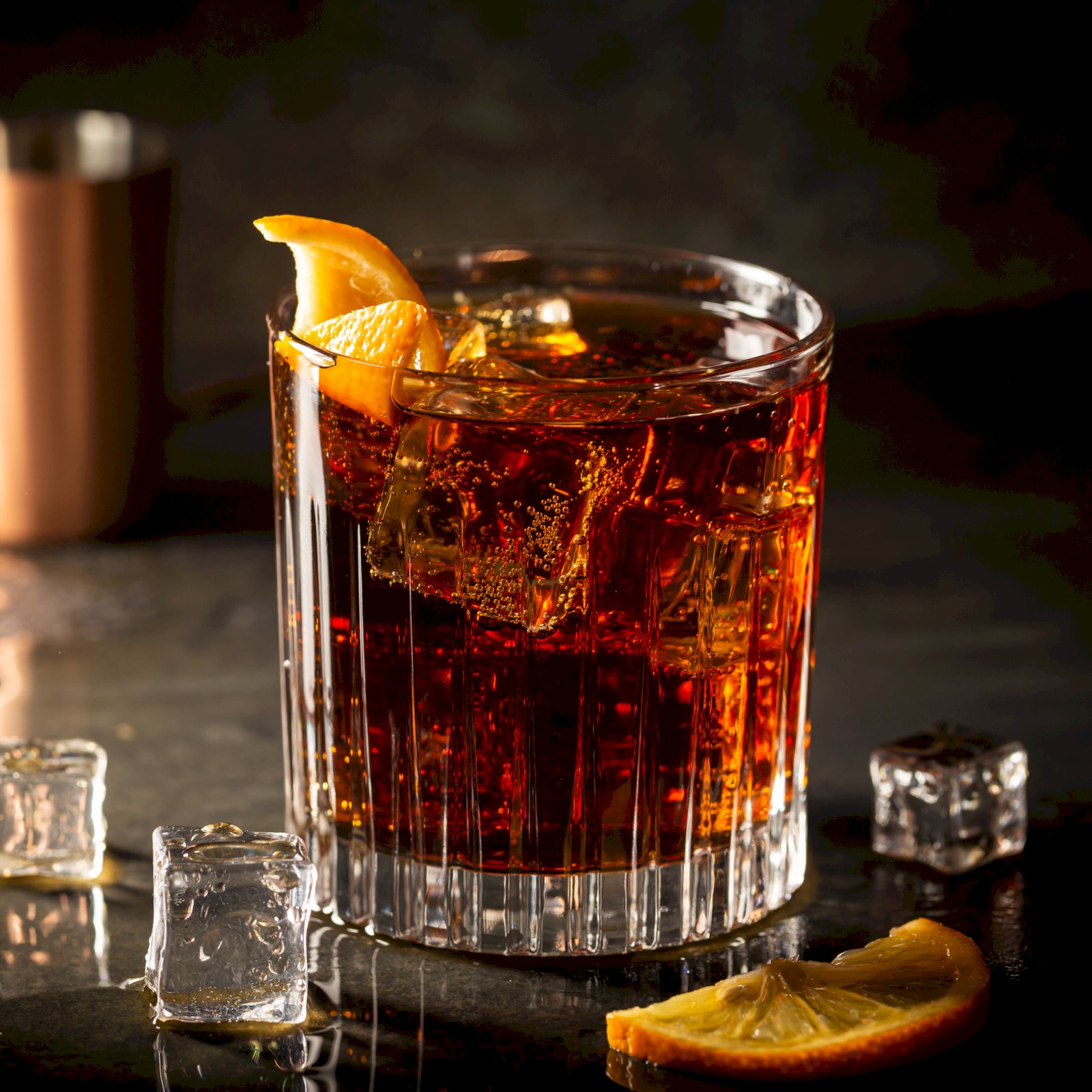 [Španělsky svobodná Kuba], koktejl z tmavého rumu, koly, limetky a ledu.