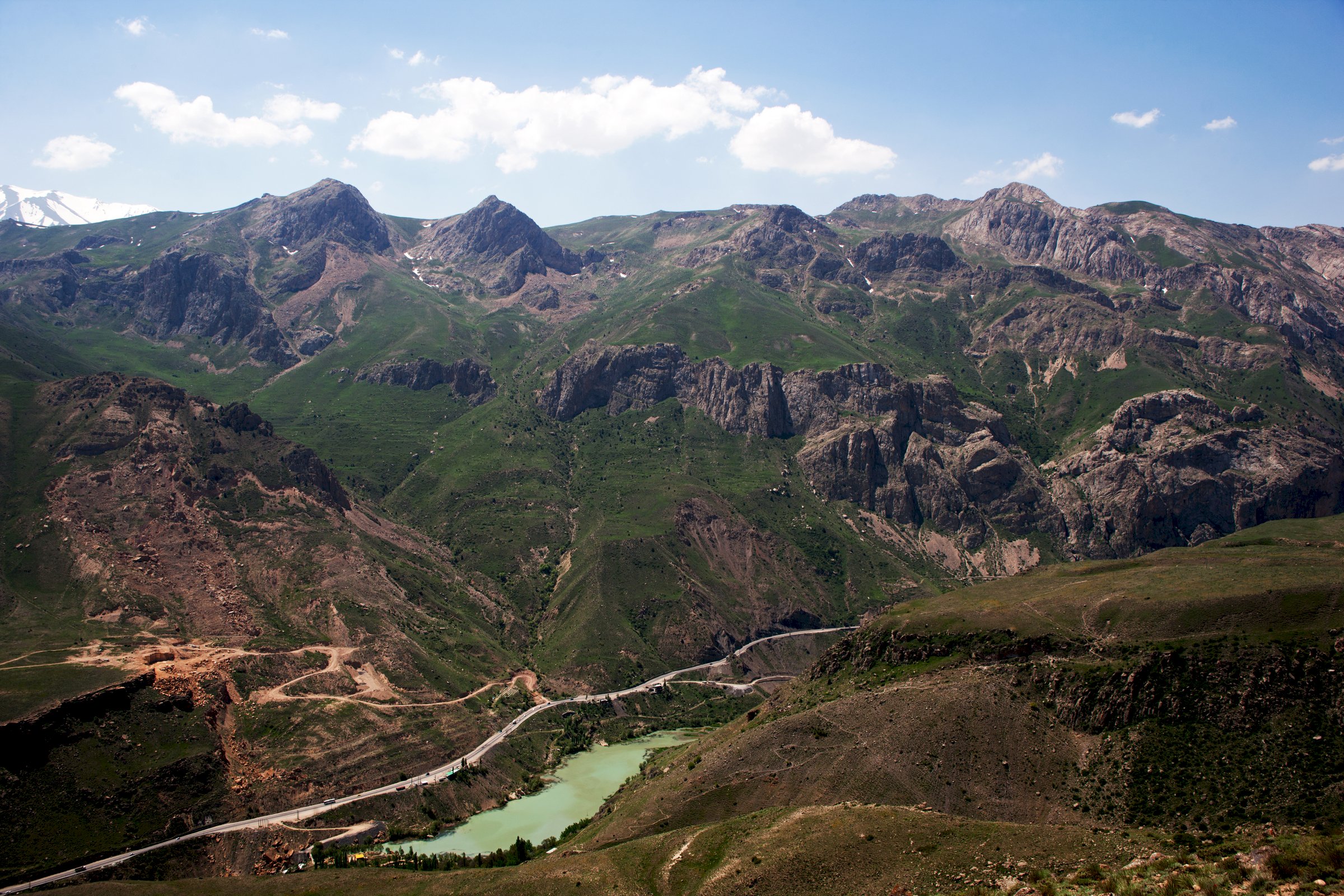 Nejvyšší pohoří Íránu na jižním pobřeží Kaspického moře, nejvyšší Demávend, 5604 m n.m. Ložiska ropy, mědi a uhlí.