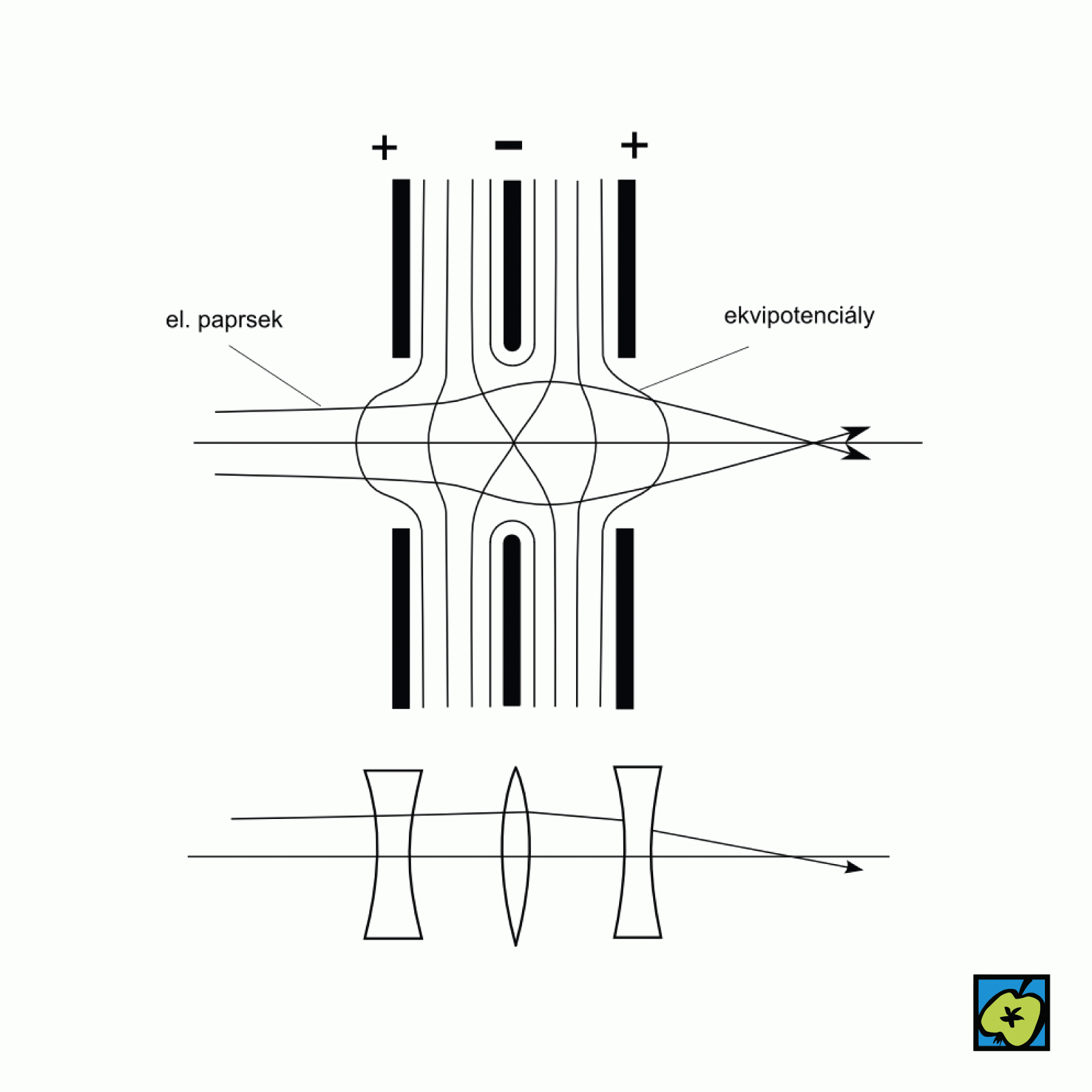 Elektronově optická čočka tvořená elektrickým polem soustavy souose rozmístěných nabitých elektrod tvaru rotačně souměrných těles (clonek, válců, prstenců). Ekvipotenciální plochy jsou pro elektronový paprsek lámavými plochami.