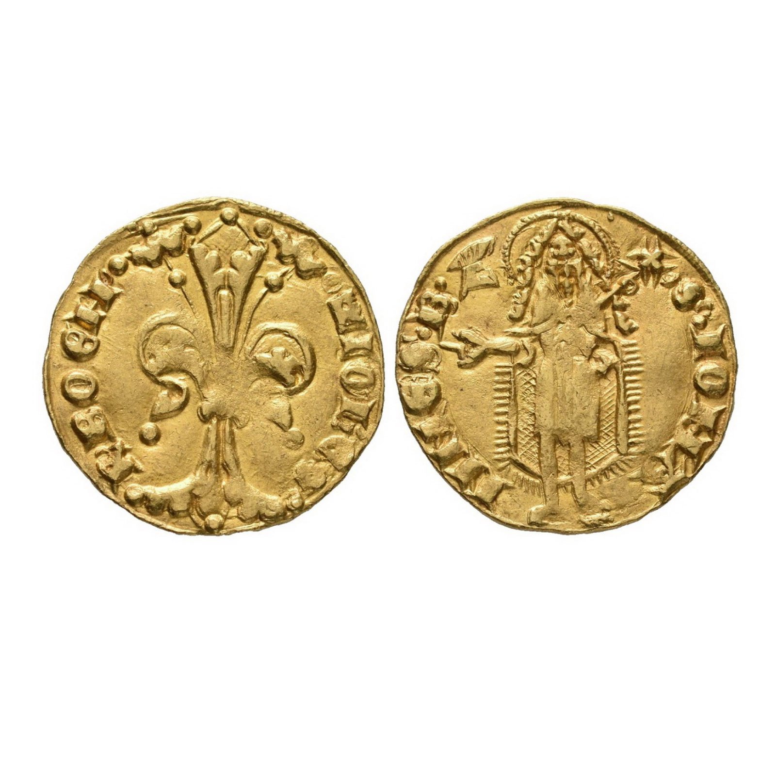 [Francouzština < italština], původně zlatá florentská mince (od roku 1252). Ve 2. polovině 13. a ve 14. století často, například ve Francii, Anglii, Porýní, napodobován.