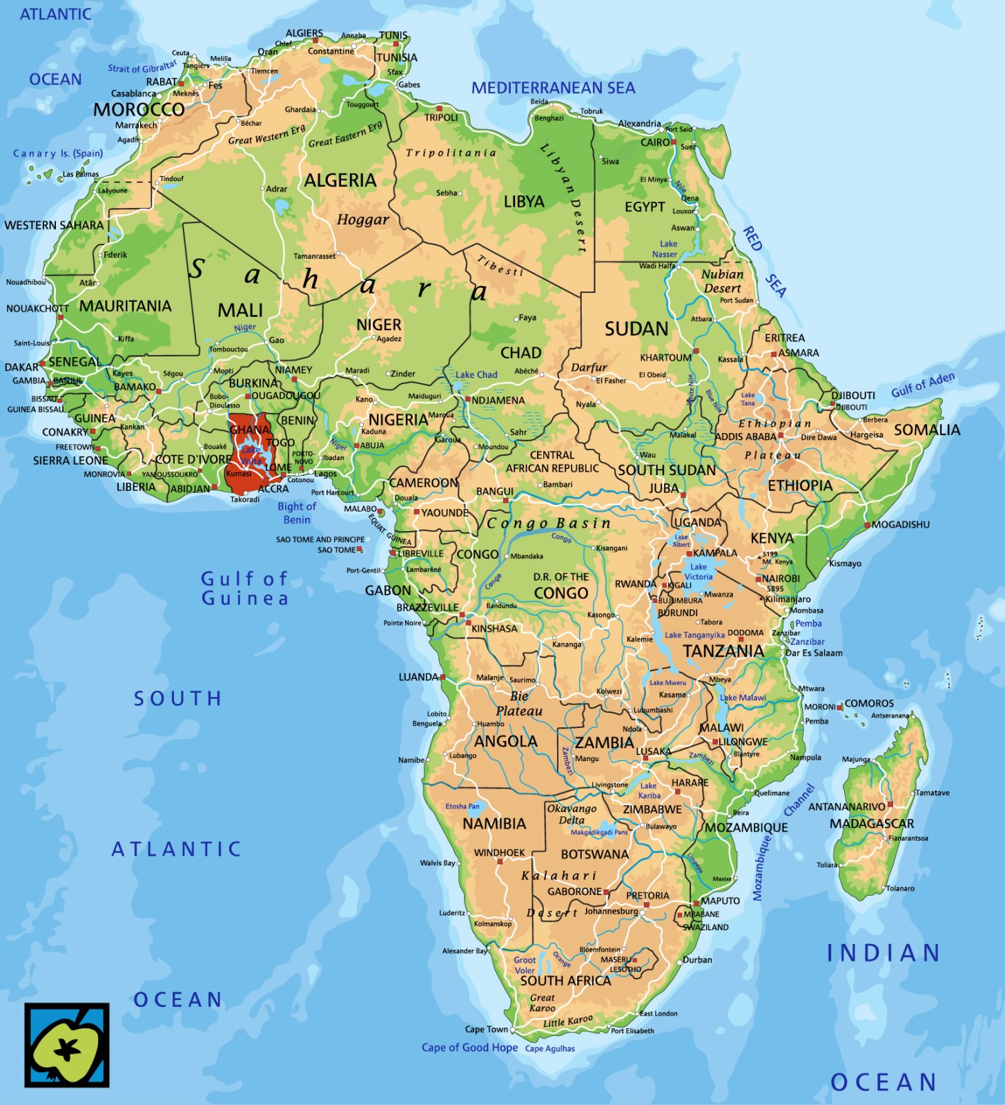 Hlavní město: Accra 1696 tis. obyv.