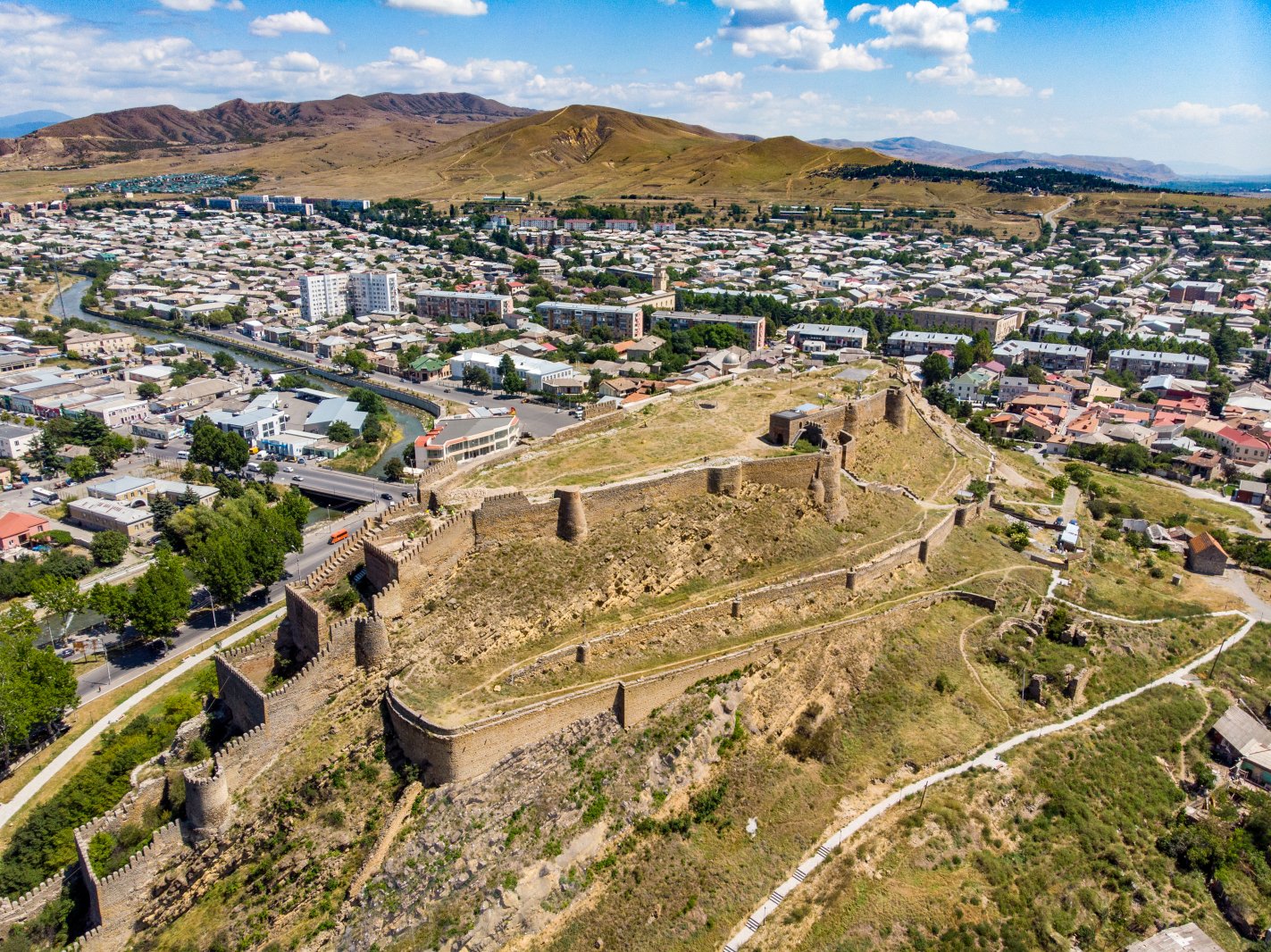 Město v Gruzii na Kuře. Průmysl bavlnářský, strojírenský, potravinářský, dřevozpracující. Železniční křižovatka. Rodiště J. V. Stalina.