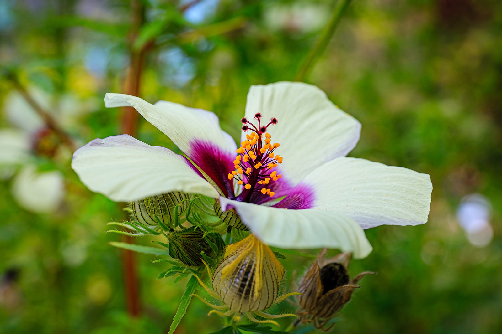 [Latina < řečtina], Hibiscus – rod dvouděložných rostlin z čeledi bombakovitých, známo asi 200 druhů, rostoucích jako byliny, keře nebo stromy v tropech a subtropech celého světa. Pro jedlé plody se pěstuje Hibiscus esculentus. Pro vlákna Hibiscus cannabinus, Hibiscus sabdariffa a Hibiscus squamosus. Hibiscus rosasinensis a Hibiscus schizopetalusa se pěstují jako okrasné.