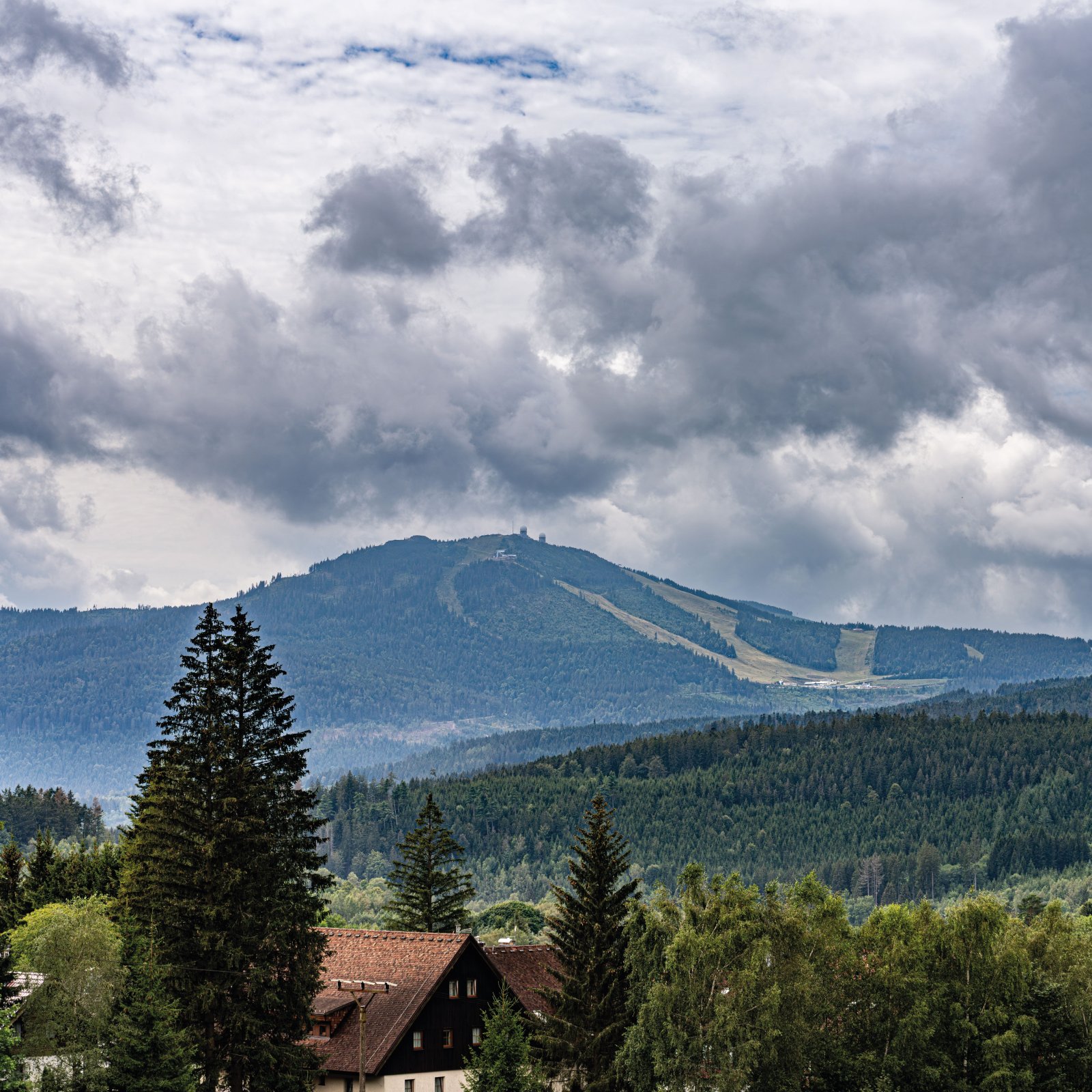 Německy Grosser Arber – nejvyšší hora Šumavy v Německu v Bavorsku, 1456 m n.m. Na svahu Velké a Malé Javorské jezero.