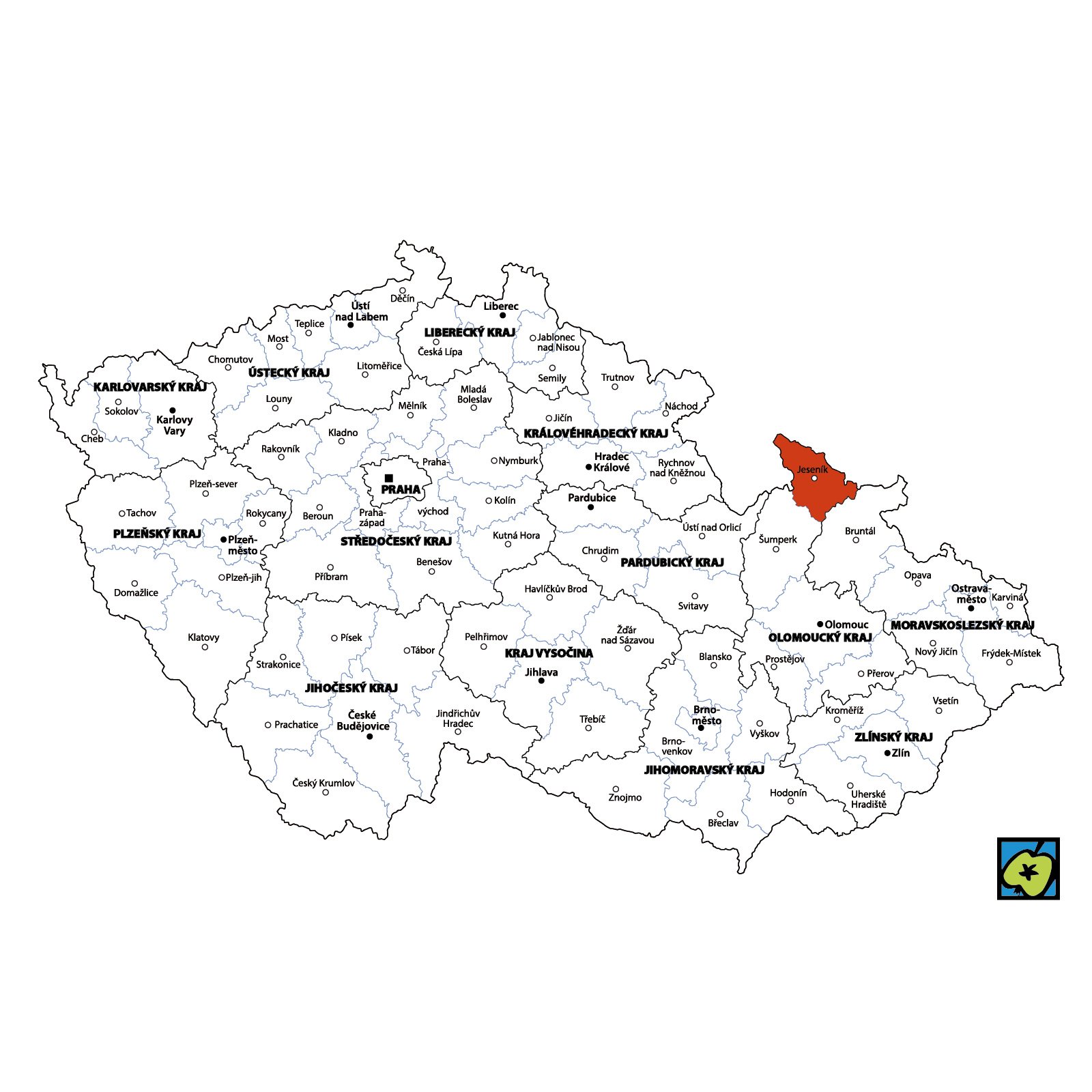 Odkazující hesla: Bělá pod Pradědem, Bernartice, Bílá Voda, Černá Voda, Česká Ves, Hradec-Nová Ves, Javorník, Jeseník, Kobylá nad Vidnavkou, Lipová-lázně, Mikulovice, Olomoucký kraj, Ostružná, Písečná, Skorošice, Stará Červená Voda, Supíkovice, Uhelná, Vápenná, Velká Kraš, Velké Kunětice, Vidnava, Vlčice, Zlaté Hory, Žulová.