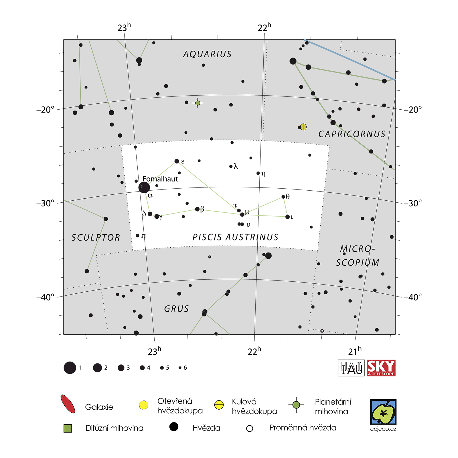 Astronomie, Piscis austrinus – souhvězdí jižní oblohy, v České republice na podzim viditelné.