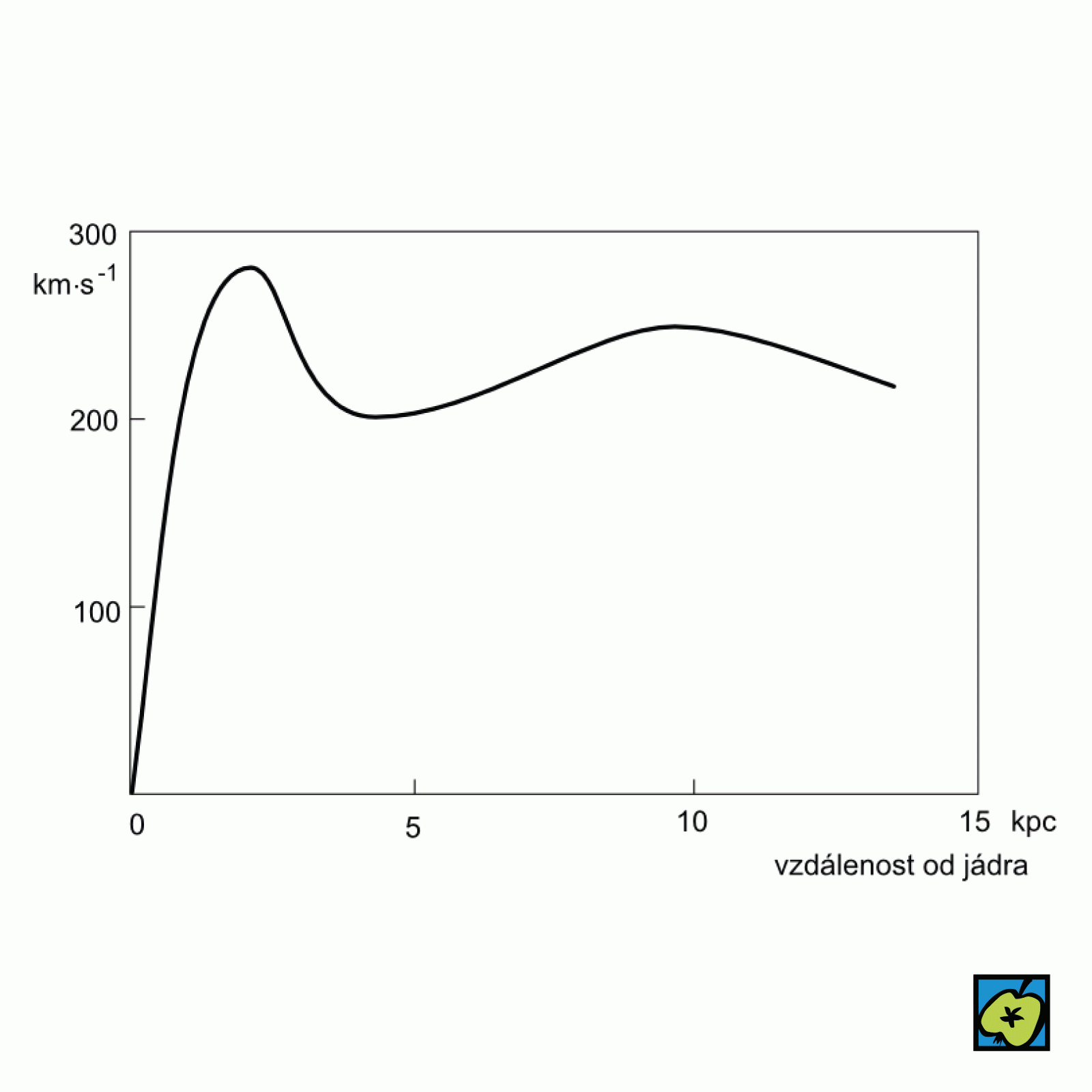 Grafické znázornění rychlosti rotace Galaxie na vzdálenosti od jejího středu. Jádro Galaxie rotuje jako pevné těleso, u vzdálenějších částí se projevuje diferenciální rotace.