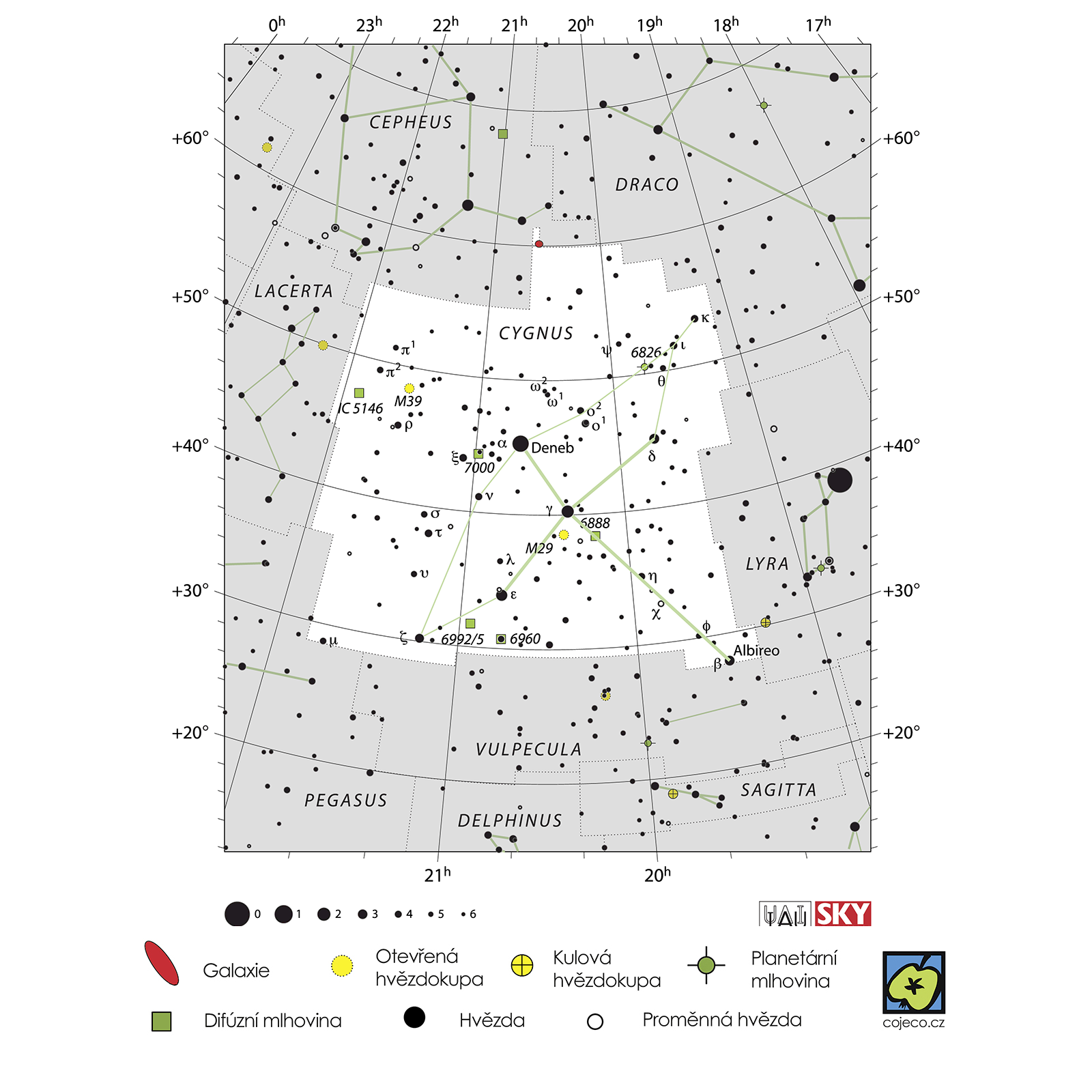 Odkazující hesla: Albireo, Deneb, Friedrich Wilhelm Bessel, Gienah, Gouldův pás, Ještěrka, Pelikán, řasová mlhovina, Sadir, Severní Amerika.