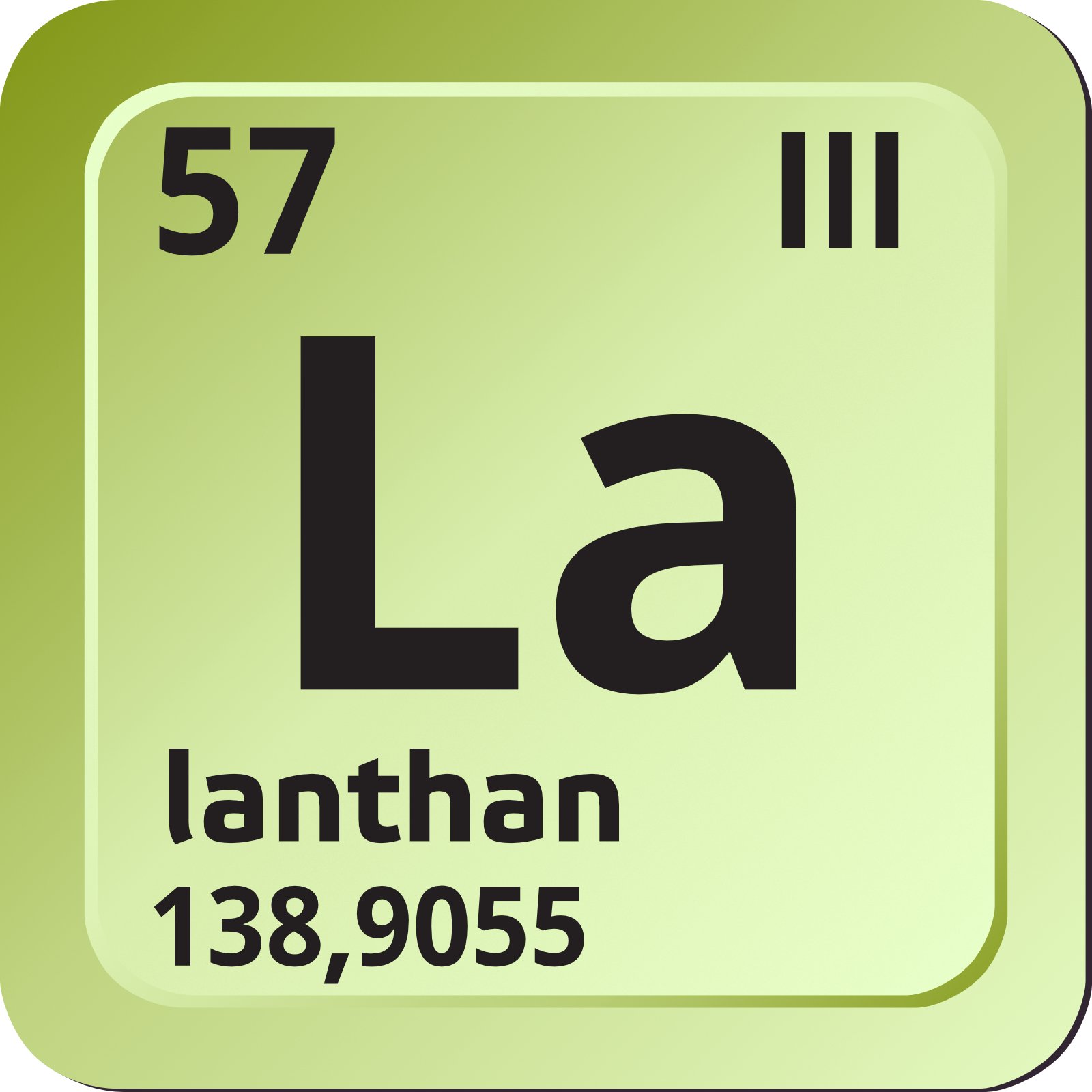 [Řečtina], lanthanum, La, chemický prvek III.A skupiny periodické soustavy, protonové číslo 57, relativní atomová hmotnost 138,9055. Bílý tažný kov, byl objeven roku 1839. Na vzduchu lanthan ihned oxiduje, za vlhka se vzniklý oxid mění na bílý hydroxid lanthanitý La(OH)3. S dusíkem nebo amoniakem se slučuje na nitrid lanthanu LaN, s vodíkem tvoří za zvýšené teploty hydrid lanthanu. S roztaveným hliníkem vytváří intermetalickou sloučeninu, která je stálá na vzduchu. Lanthan lze připravit elektrolýzou nebo redukcí sodíkem. Tvoří řadu sloučenin, ve kterých má oxidační číslo III. Používá se do křesacích kamínků zapalovačů, k dezoxidaci ocelí a do skel speciálních čoček.
