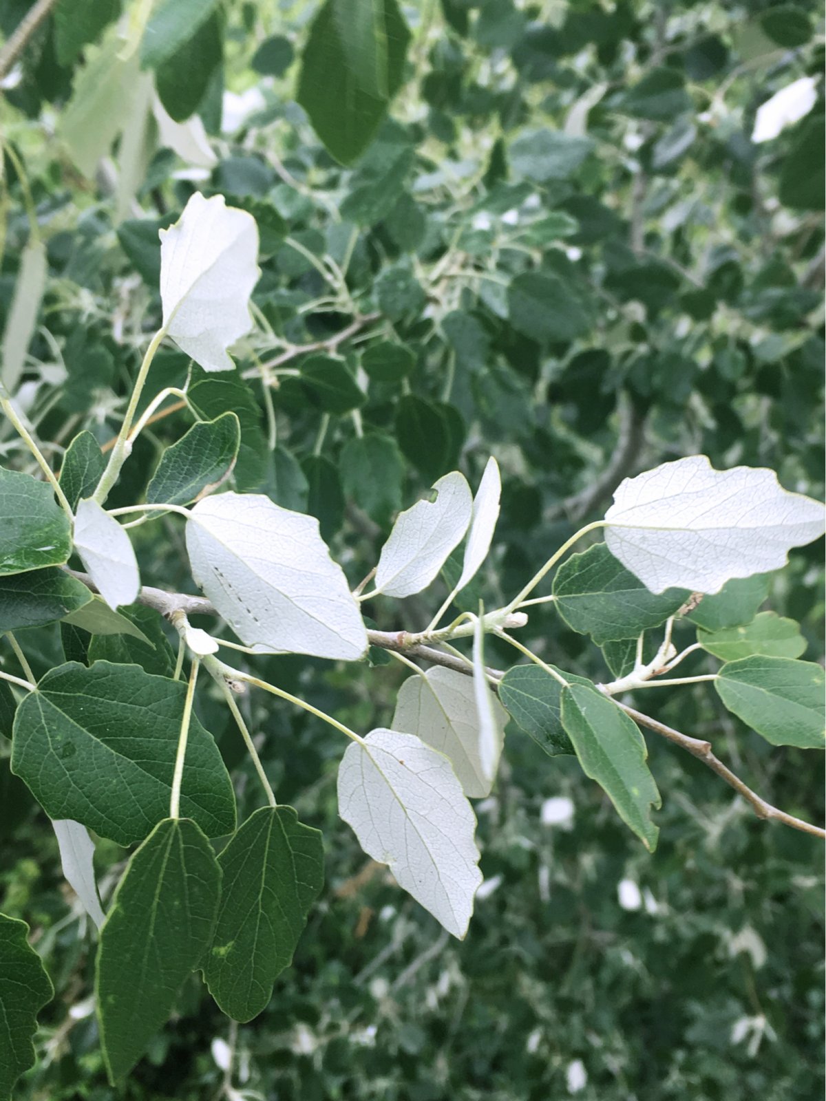 [Němčina], botanika, topol bílý, Populus alba – strom z čeledi vrbovitých. Roste hlavně podél jihoslovenských řek, kde je původní. Často se i vysazuje.