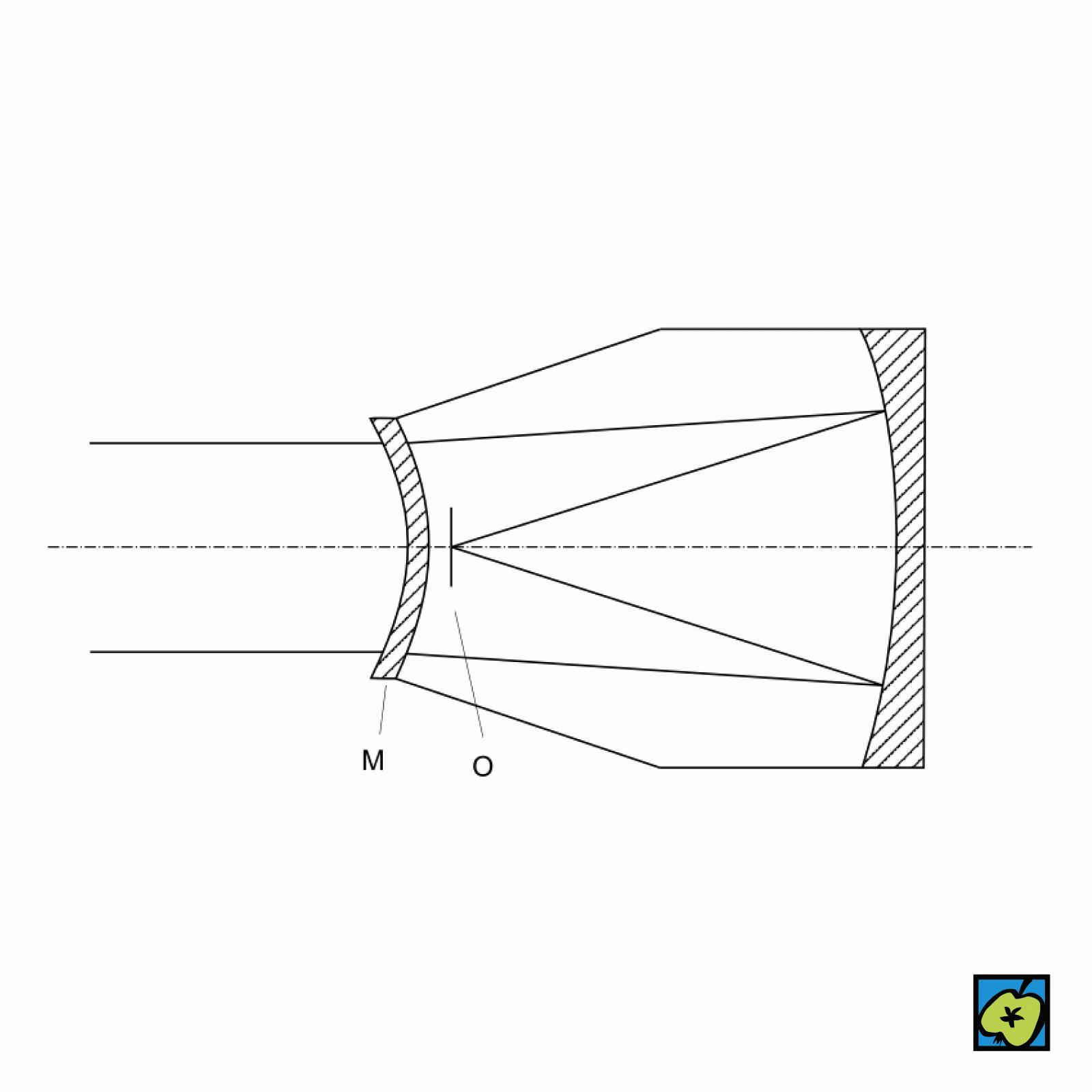 Dalekohled typu reflektoru s kulovým zrcadlem, jehož vady opravuje skleněný meniskus. Plocha fotografické emulze má stejnou křivost jako hlavní zrcadlo.