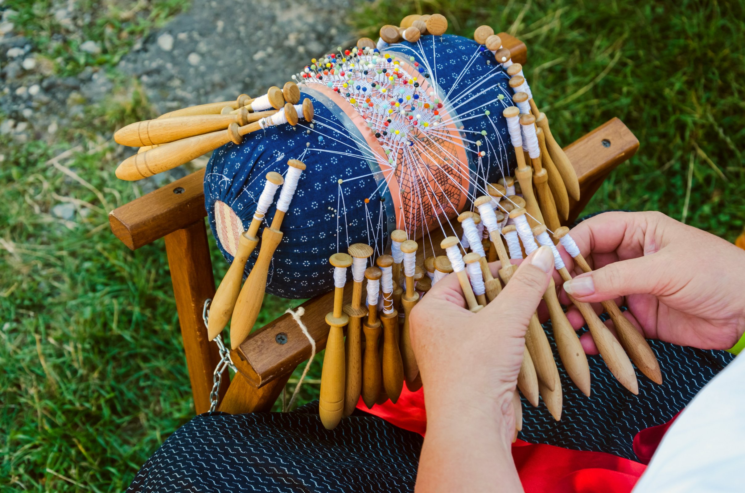 Výroba krajek buď ruční na podušce vzájemným obtáčením cívek, tzv. paliček, nebo strojní na paličkovacím stroji.