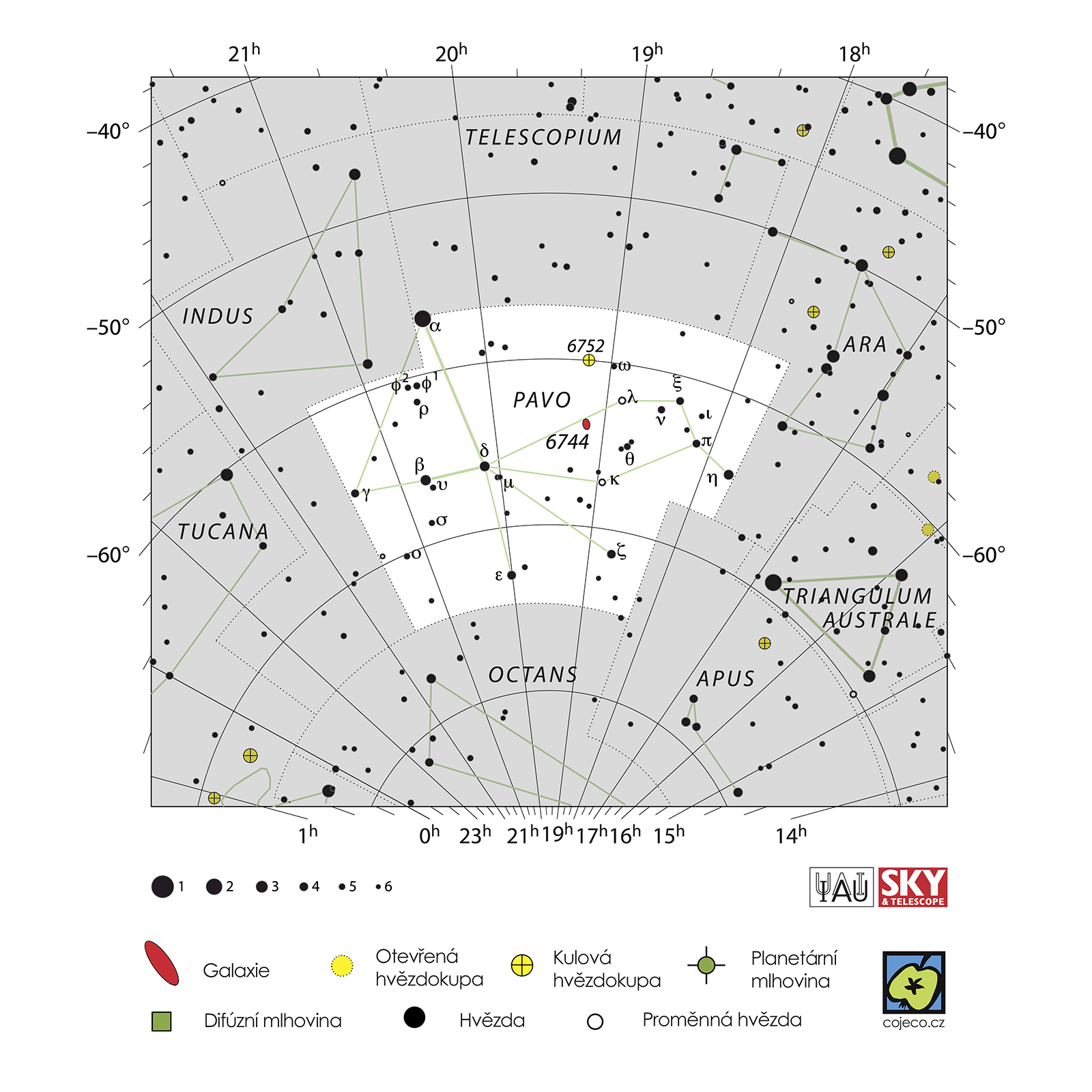 Astronomie, Pavo – souhvězdí jižní oblohy.
