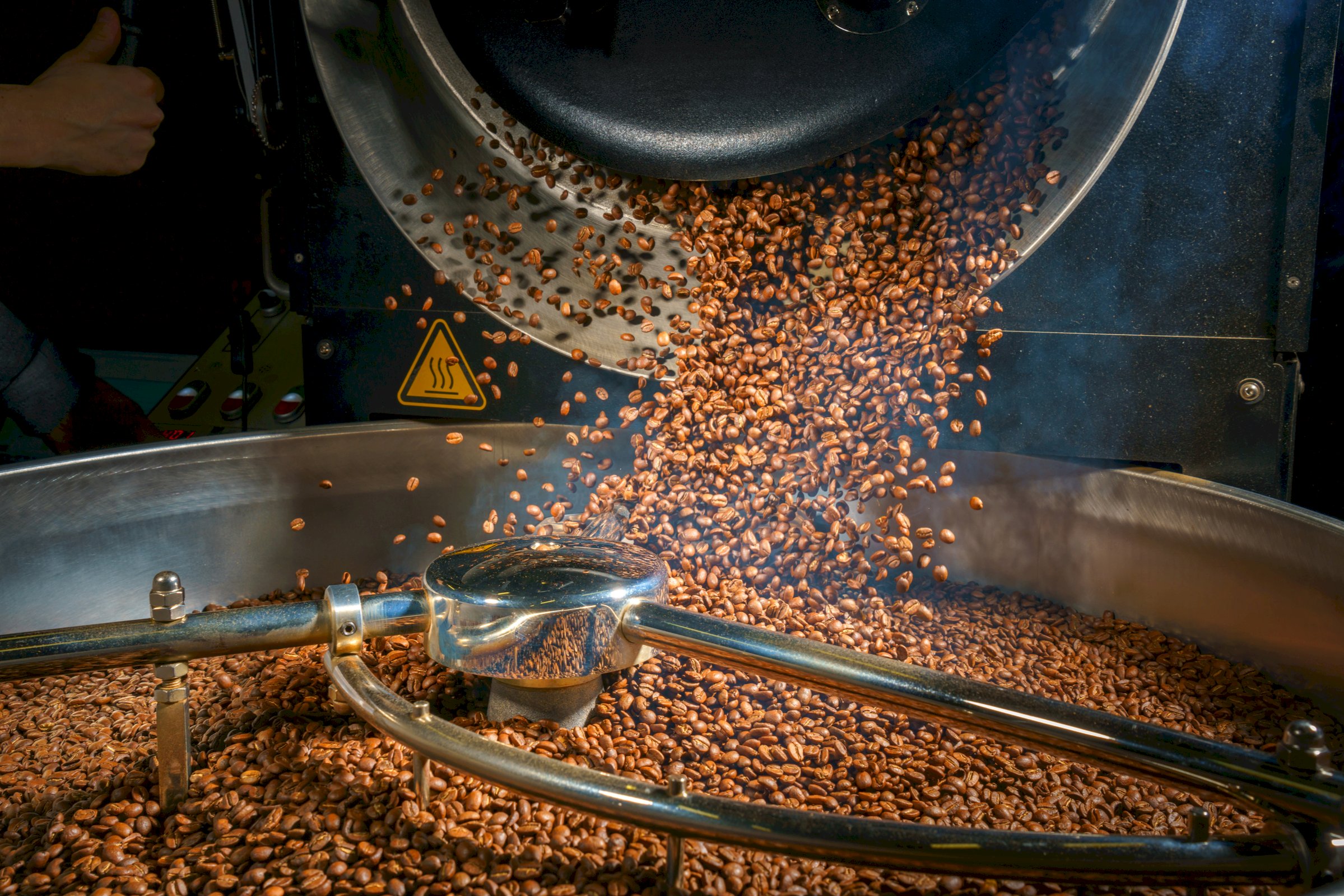 Potravinářství, tepelná úprava látek, například pražení obilí, kávy, kakaa, v pražících strojích vyhřívaných například horkým vzduchem na teplotu, při které se docílí požadovaných změn, například u kávy zhnědnutí a aromatizace.