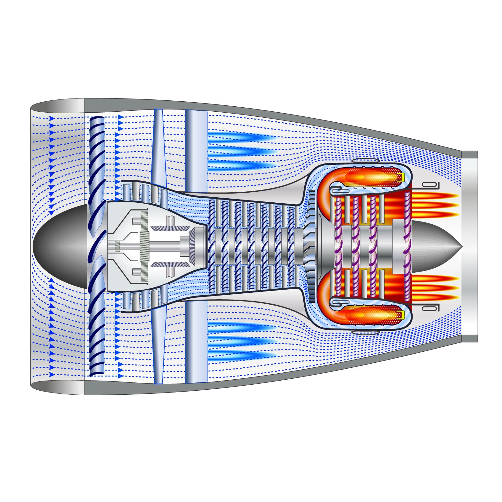 Tryskový letecký motor vyvolávající tažnou sílu reakčním účinkem proudu zplodin hoření a vzduchu proudícího motorem. Rozeznává se proudový motor s kompresorem (nejběžnější) a bez kompresoru (náporový motor), kde tlak kompresoru je nahrazen náporovým účinkem vzduchu proudícího proti vstupnímu hrdlu motoru. Vzduch vstupuje do spalovací komory, kde probíhá hoření vstřikovaného paliva při stálém tlaku. Energie zplodin se využije k vzniku tažné síly při jejich výstupu z trysky motoru. U typu kompresorového se část energie spotřebuje v turbíně pohánějící kompresor. Ke krátkodobému zvýšení tahu proudového motoru lze použit přídavné spalování za oběžným kolem turbíny. Dnes je proudový motor nejběžnějším druhem pohonu všech dopravních i vojenských letounů.