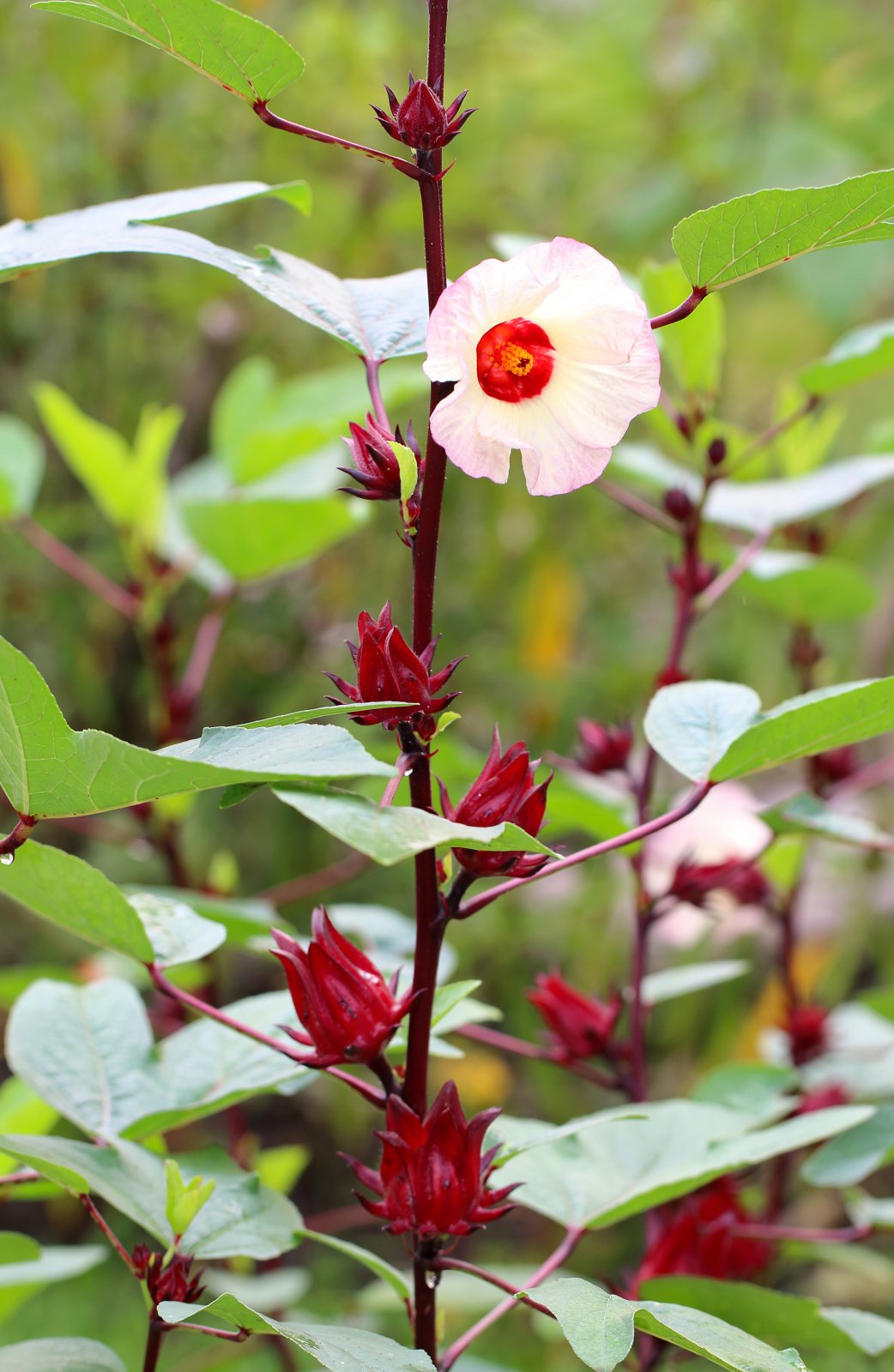 Botanika, Hibiscus sabdarifa – bylina nebo nízký keř z čeledi slézovitých, původně z Karibské oblasti. Pěstuje se v tropech i subtropech celého světa pro stonky, ze kterých se získává nahnědlé, hedvábně měkké, lesklé vlákno, používané hlavně k výrobě provazů. Dužnatý, červený, ostře kyselý kalich květů se používá k výrobě želé, vína a džemů;