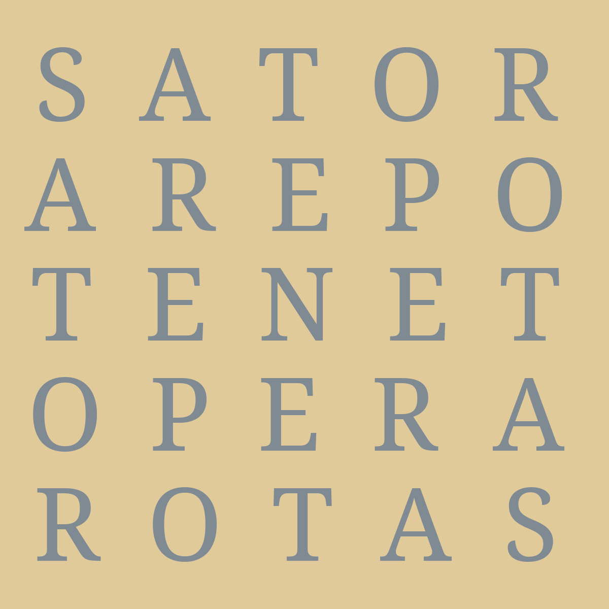 Asi nejslavnější je slovní čtverec 5x5 znaků, čitelný ve čtyřech směrech, vyskytující se na náhrobcích apod.: SATOR AREPO TENET OPERA ROTAS. Pokud bychom text tohoto slovního čtverce brali jako latinský, což je pravděpodobný původní jazyk, potom gramaticky nesprávná věta by mohla znamenat Stvořitel Arepo udržuje dílo v pohybu nebo také Rozsévač Arepo drží s námahou kola. Věta není gramaticky správně a jde spíše o sémanticko-grafickou hříčku, než sdělení nějakého jasného významu. SATOR – rozsévač, původce, stvořitel; AREPO – buď vlastní jméno, ale možná také odvozenina od jména boha Serapise, jehož kult vznikl několik staletí před naším letopočtem; TENET – tvar 3. osoby slovesa držet; OPERA – práce, díla (množné číslo); ROTAS – tvar 2. osoby slovesa otáčet (se), rotovat, ale také kola, vůz.