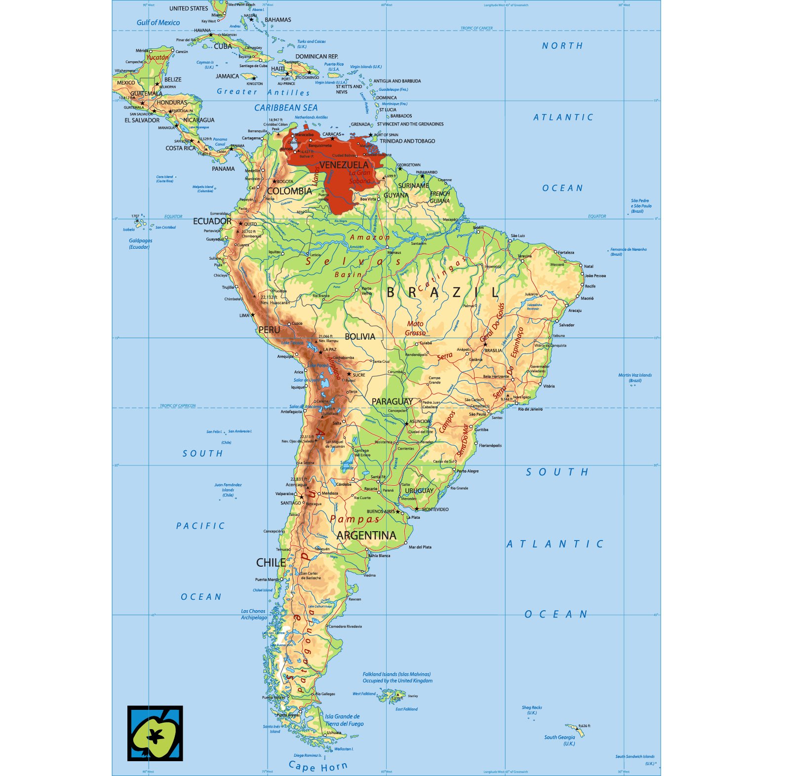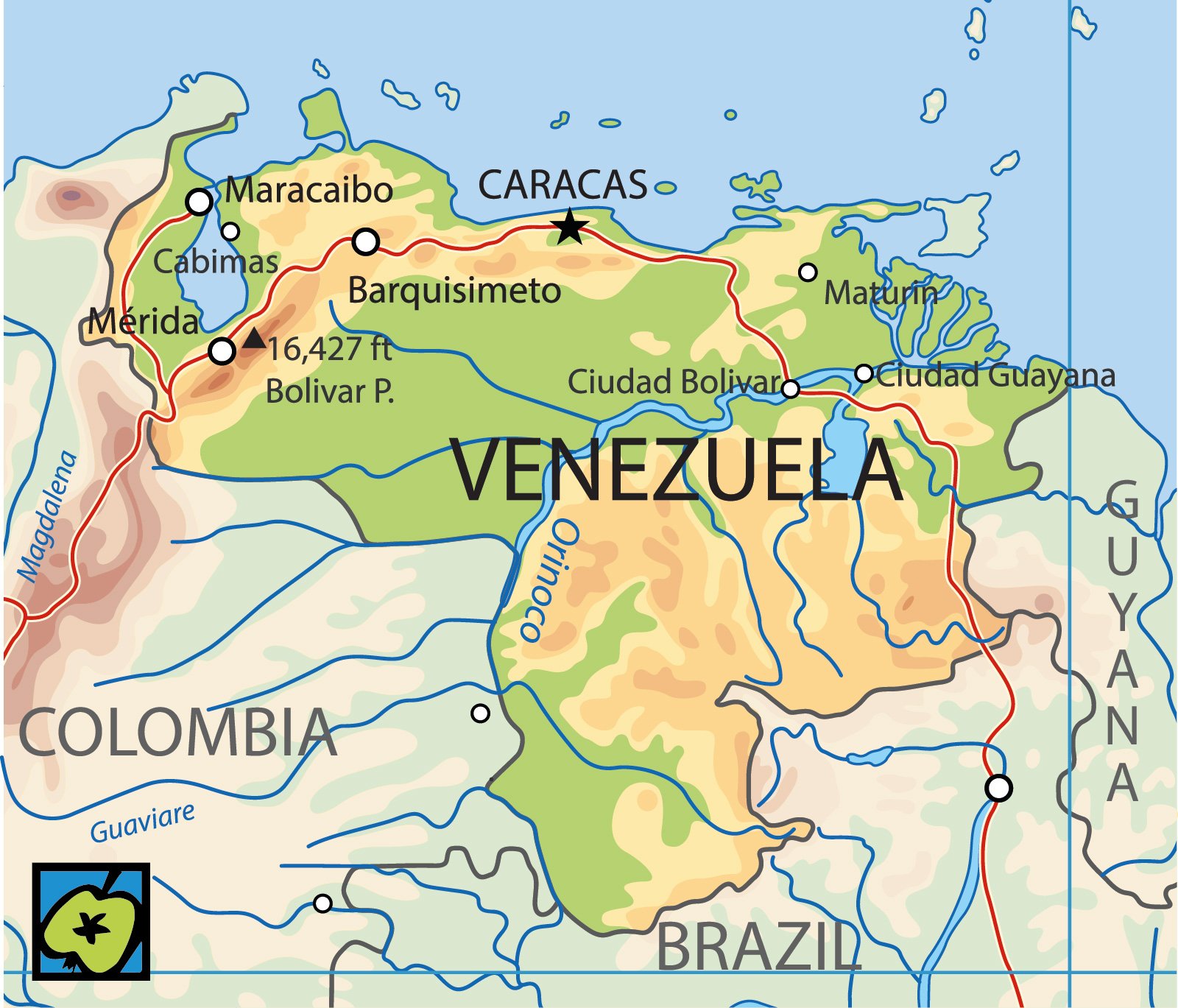 Nejvyšší hora: Pico Bolívar 5007 m.