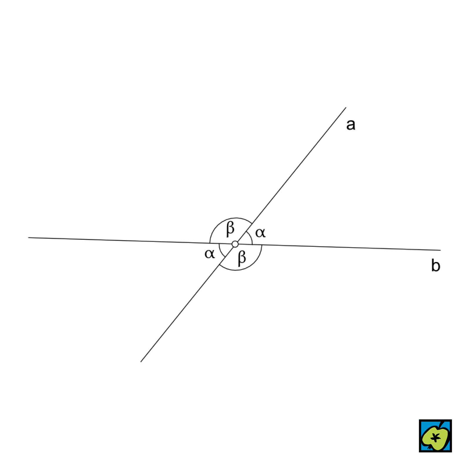 Vrcholový úhel k danému konvexnímu úhlu, úhel se stejným vrcholem, jehož rameny jsou opačné polopřímky k ramenům daného úhlu. Dvě různoběžky určují dvě dvojice vrcholových úhlů. Dvě dvojice vrcholových úhlů α, β, určených různoběžkami a, b.