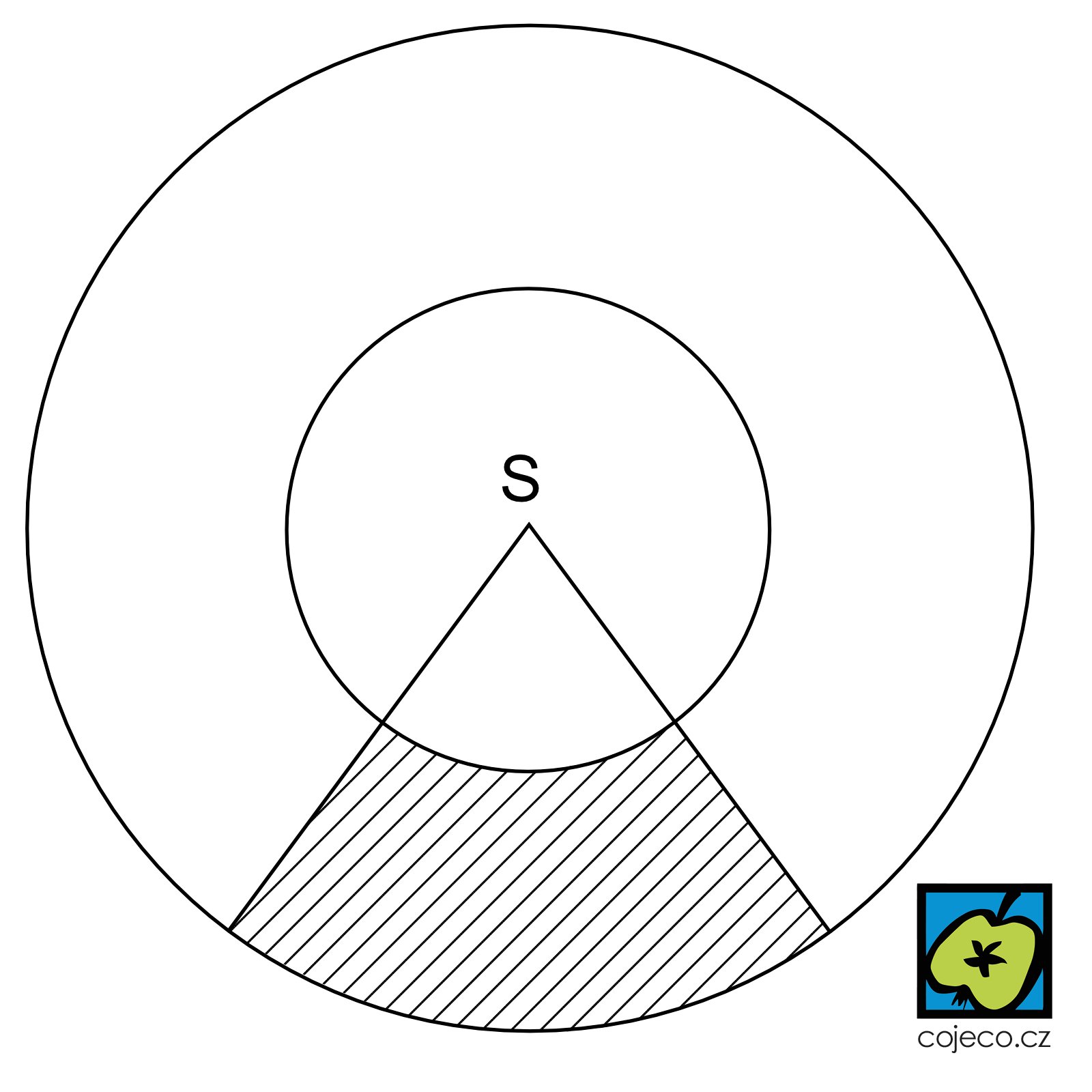 Plocha výseče mezikruží \(S\):