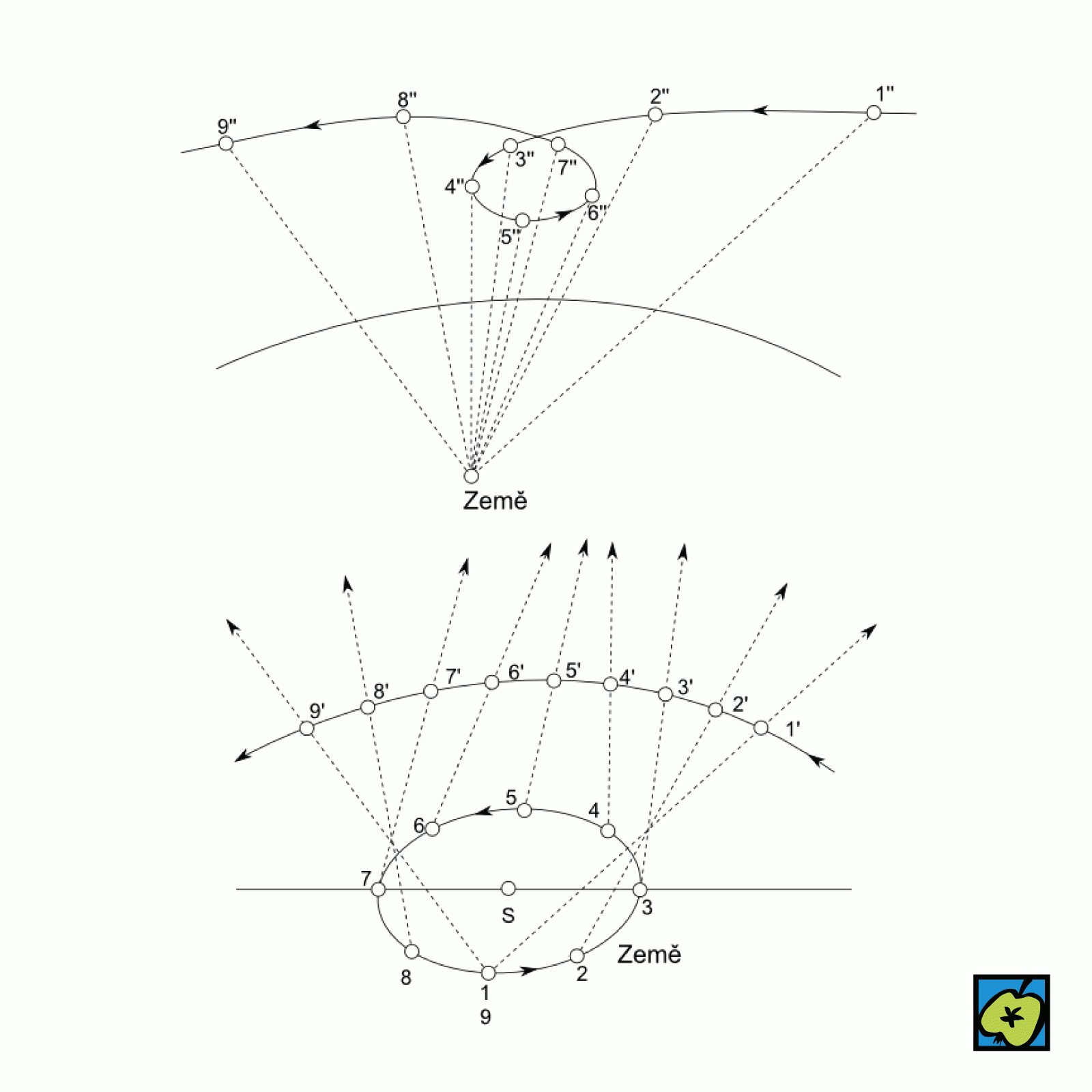 Ze Země pozorované změny poloh nebeského tělesa, jejichž skutečný pohyb je zkreslen: a) rotací Země (denní zdánlivý pohyb), b) ročním oběhem Země kolem Slunce, c) pohybem Slunce při jeho oběhu kolem středu Galaxie. Viz také pohyb.